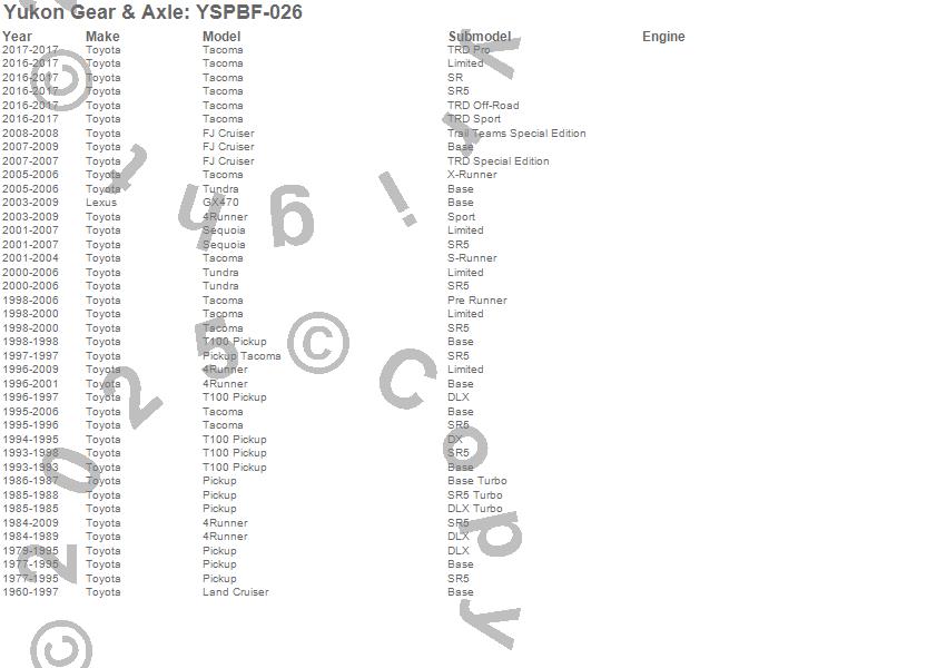 Below is an abreviated list of applications for the Pinion Bearing Oil Baffle.