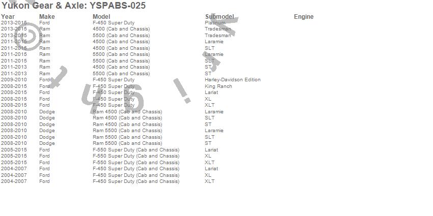 Below is an abreviated list of applications for the ABS Tone Ring.