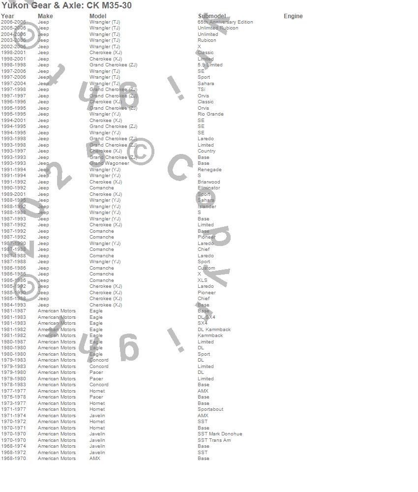 Yukon Gear & Axle Carrier Bearing Kit CK M35-30 Features: