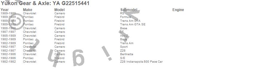 Below is an abreviated list of applications for the Axle Shaft.