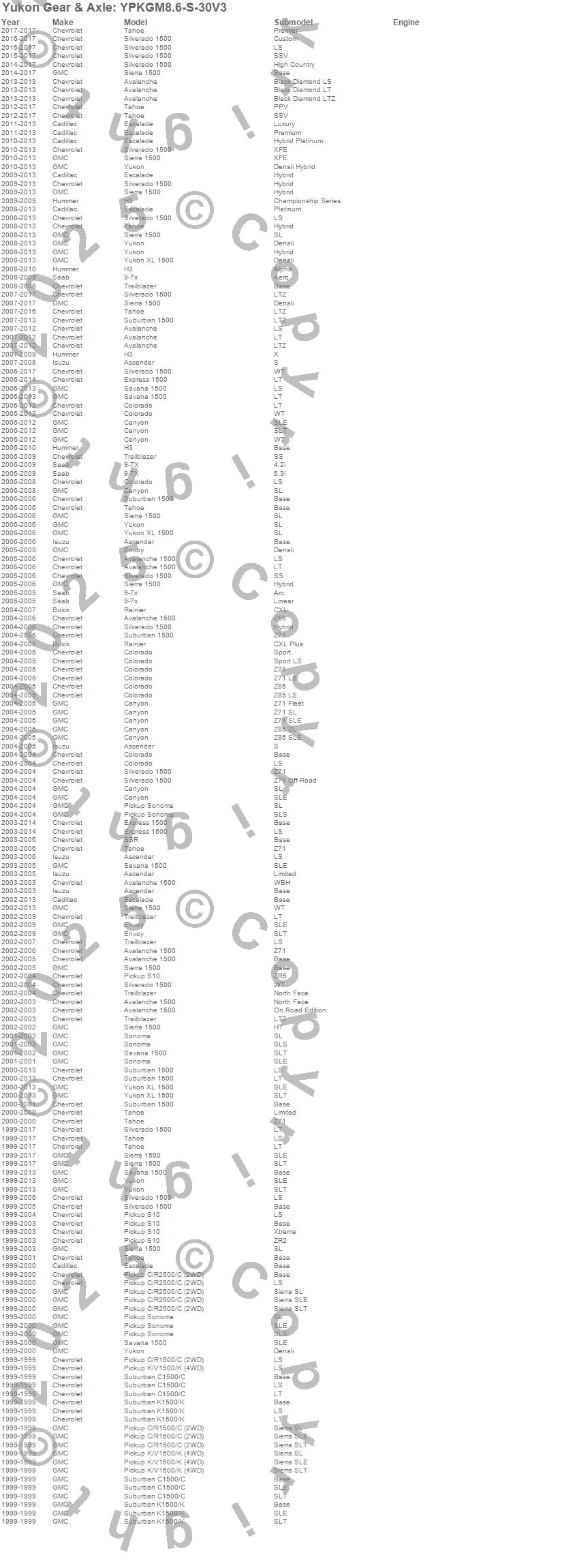 Ascender, Avalanche, Avalanche 1500, C1500 Pickup, C1500 Suburban, C2500 Pickup, Canyon, Colorado, Envoy, Envoy XL, Envoy XUV, Escalade, Escalade ESV, Escalade EXT, Express 1500, H3, K1500 Pickup, K1500 Suburban, Rainier, S10 Blazer more…