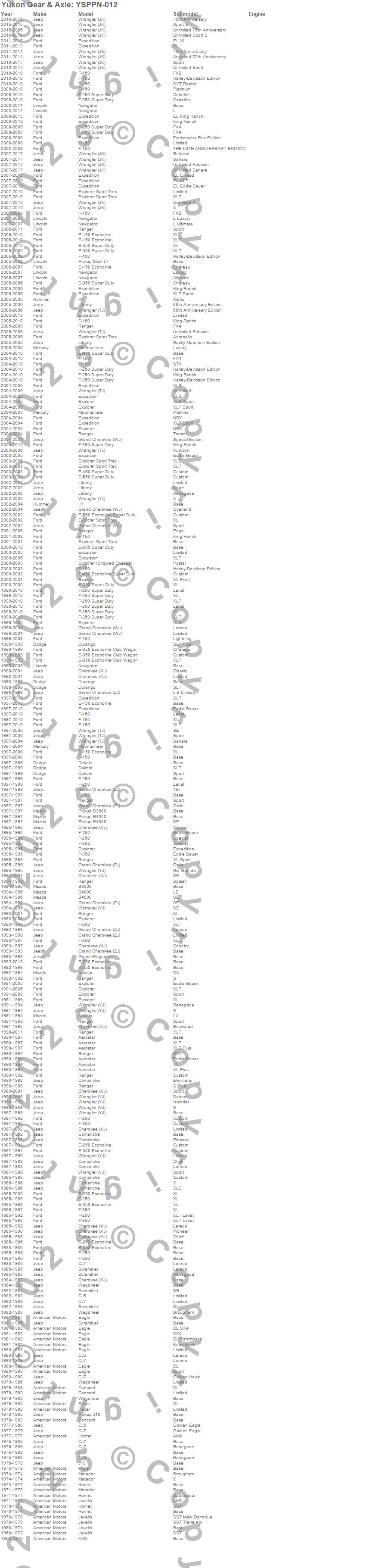 AMX, Concord, Durango, E-350 Econoline, E-350 Econoline Club Wagon, Expedition, Explorer, F-150, F-150 Heritage, F-250, F-250 Super Duty, F-350, F-350 Super Duty, H1, Javelin, Liberty, Matador, Navigator, Wrangler (JK), American Motors more…