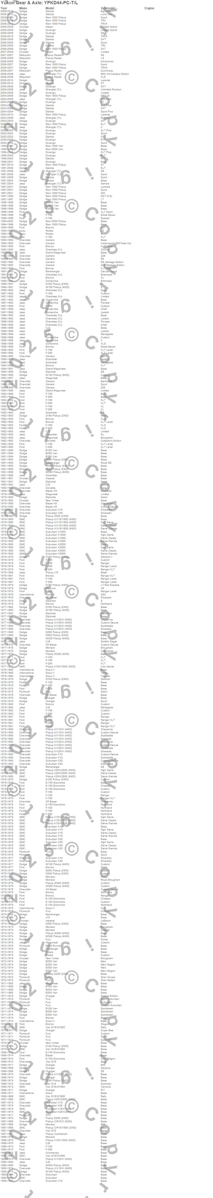 Below is an abreviated list of applications for the Trac Loc Clutch Kit.