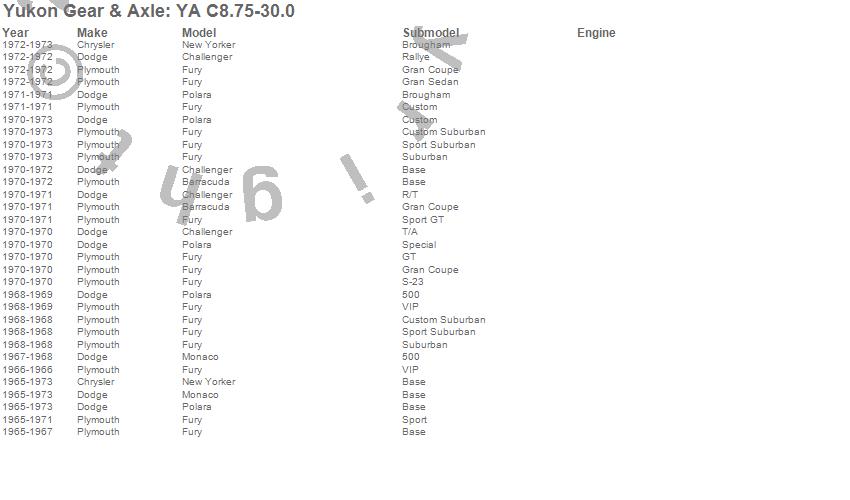 Barracuda, Challenger, Fury, Fury I, Fury II, Fury III, Gran Fury, Monaco, New Yorker, Polara, Chrysler, Dodge, Plymouth, 1973, 1972, 1971, 1970, 1969, 1968, 1967 more…