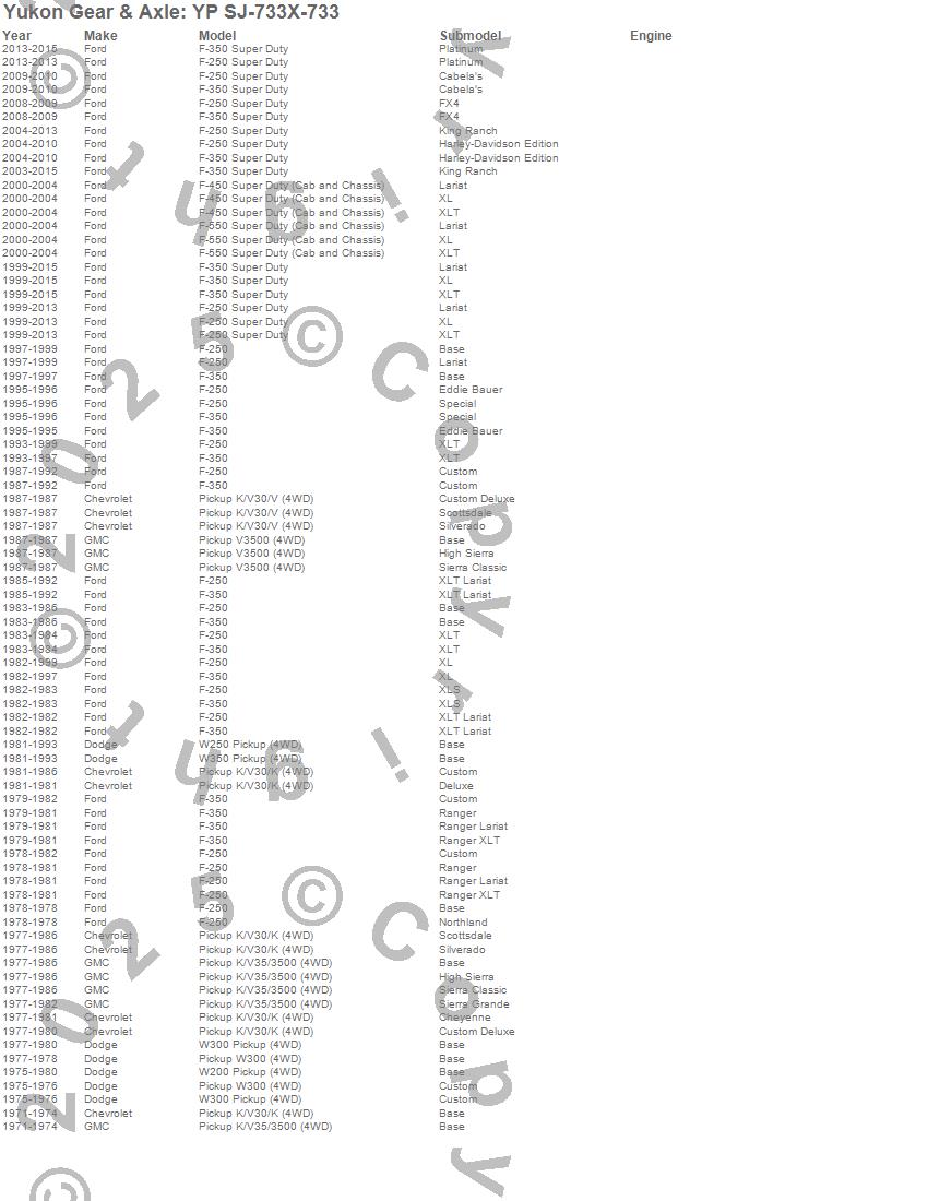 Below is an abreviated list of applications for the U-Joint.