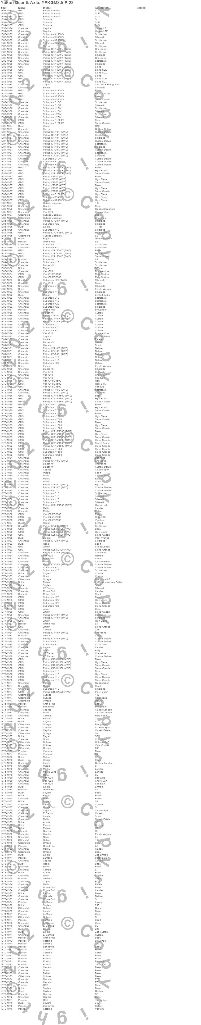 Blazer, Blazer K5, Bonneville, C10 Suburban, C15 Suburban, C15/C1500, C1500, C1500 Pickup, C1500 Suburban, Catalina, Cutlass, Firebird, Firebird Trans Am, G15/G1500 Van, G25/G2500 Van, Grand LeMans, Grand Prix, GTO, K10 Pickup, K10 Suburban more...