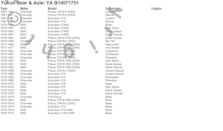 Below is an abreviated list of applications for the Axle Shaft.