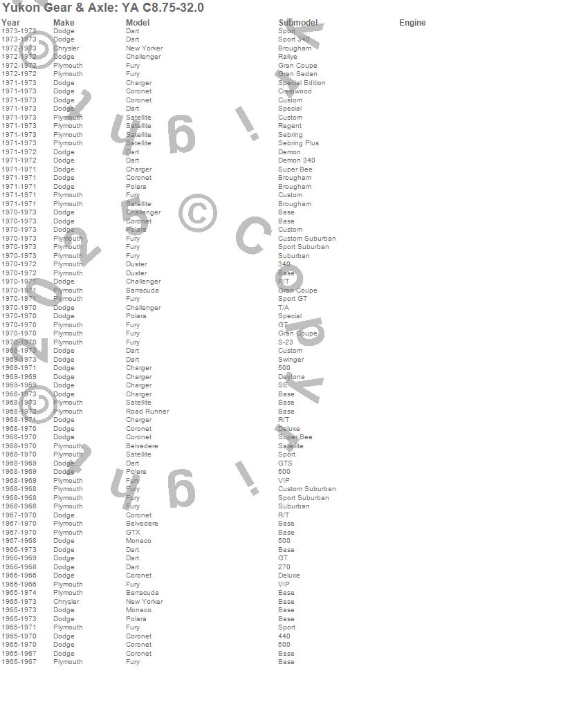 Barracuda, Belvedere, Belvedere II, Challenger, Charger, Coronet, Dart, Duster, Fury, Fury I, Fury II, Fury III, GTX, ML350, Monaco, New Yorker, Polara, Road Runner, Satellite, Chrysler more…
