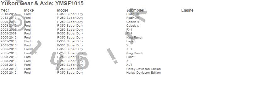 Below is an abreviated list of applications for the Yukon Mighty Axle Bearing/Seal Kit.