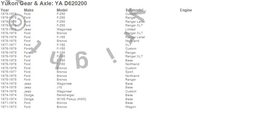 Below is an abreviated list of applications for the Stub Axle.