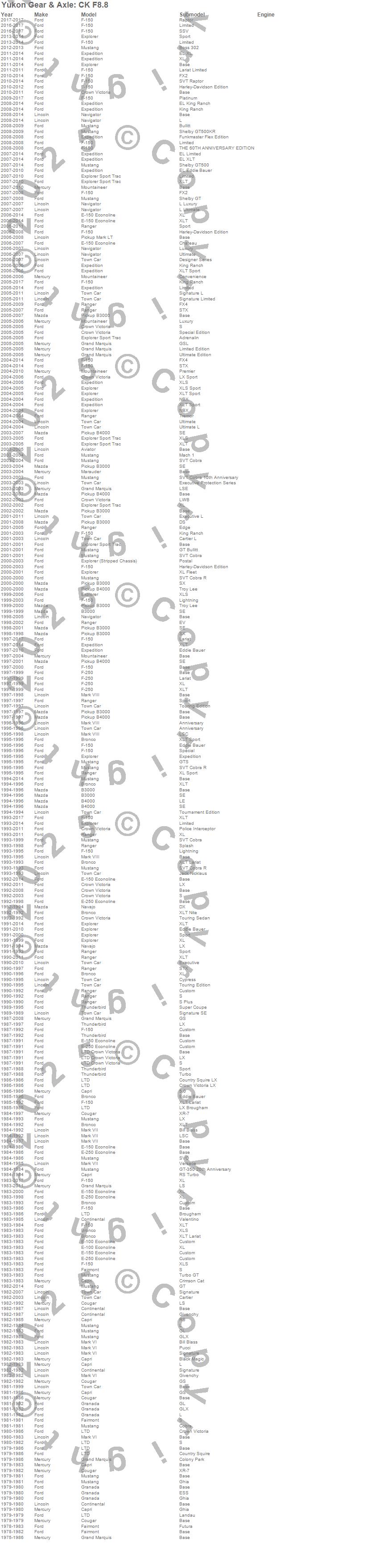 Aviator, B4000, Bronco, Capri, Continental, Cougar, Crown Victoria, E-150 Econoline, E-150 Econoline Club Wagon, Expedition, Explorer, Explorer Sport Trac, F-150, F-150 Heritage, Granada, Grand Marquis, LTD, Mark VI, Mountaineer, Mustang more…
