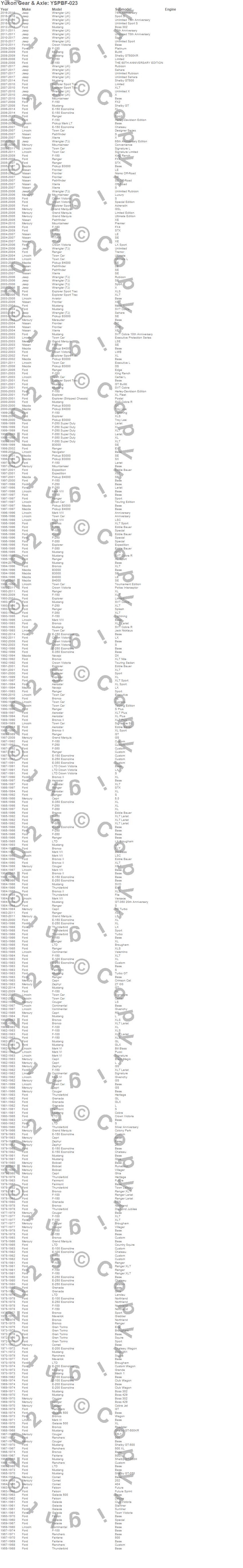 Aviator, B3000, B4000, Bronco, Bronco II, Capri, Continental, Cougar, Crown Victoria, E-150 Econoline, E-150 Econoline Club Wagon, E-350 Econoline, E-350 Econoline Club Wagon, Expedition, Explorer, F-100, F-150, F-150 Heritage, F-250, F-350 more…