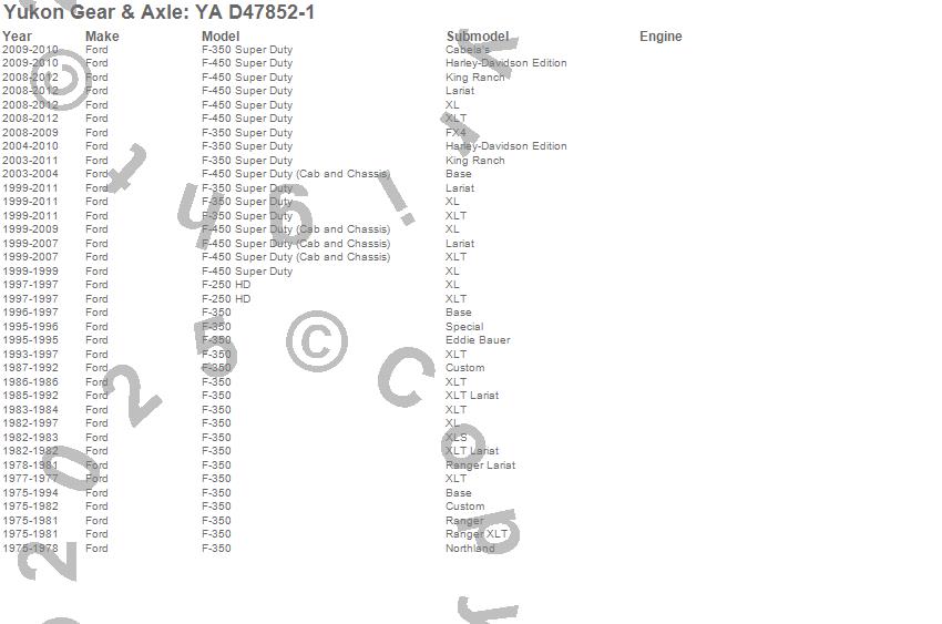 Below is an abreviated list of applications for the Axle Shaft.