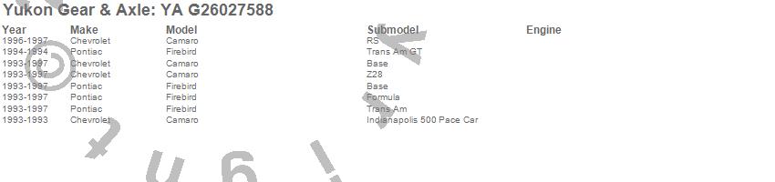 Below is an abreviated list of applications for the Axle Shaft.