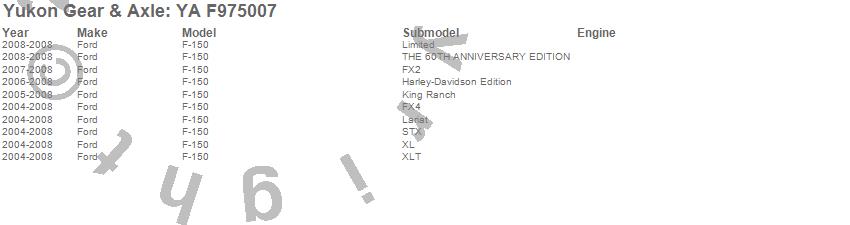 Below is an abreviated list of applications for the Axle Shaft.