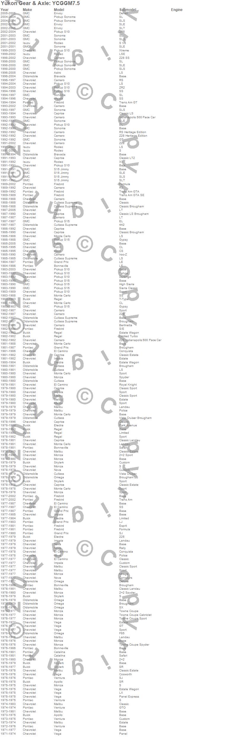 Astro, Camaro, Caprice, El Camino, Firebird, Grand Prix, Impala, Malibu, Monte Carlo, Rodeo, Rodeo Sport, S10 Blazer, S10 Blazer (Canadian), S10 Pickup, S15 Jimmy, S15 Pickup, Sonoma, Syclone, Chevrolet, GMC more...
