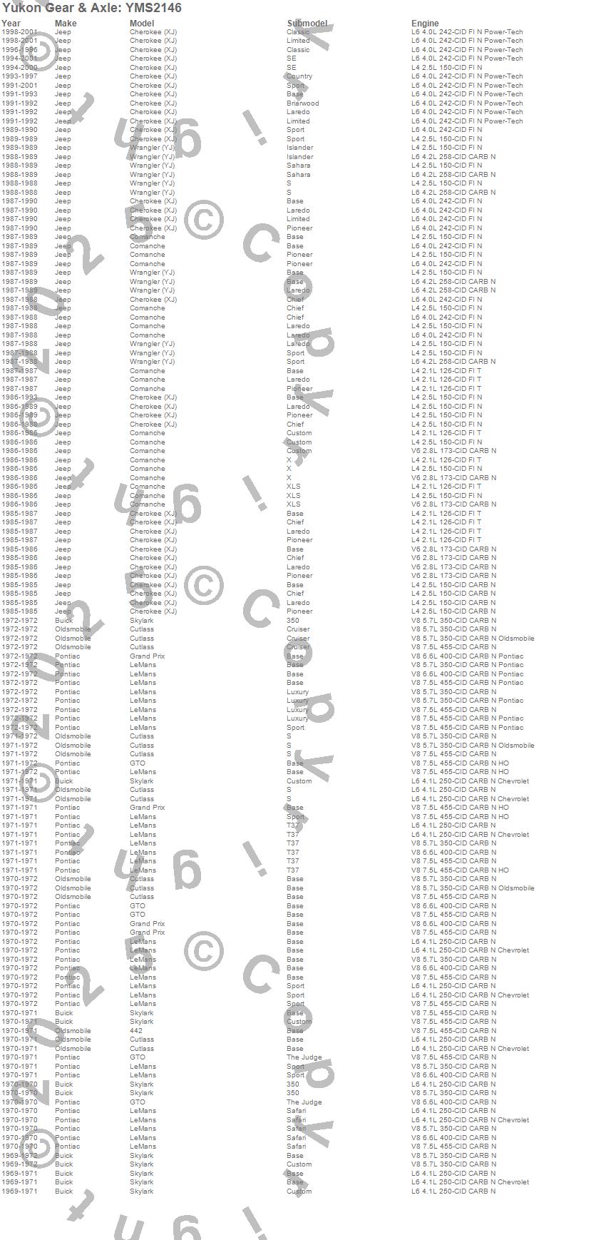 Below is an abreviated list of applications for the Yukon Mighty Axle Seal.
