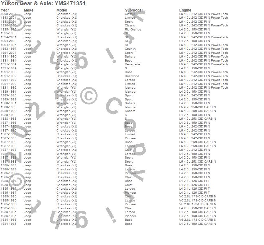 Below is an abreviated list of applications for the Yukon Mighty Axle Seal.