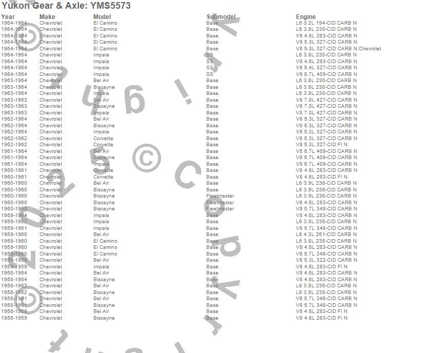 Below is an abreviated list of applications for the Yukon Mighty Axle Seal.