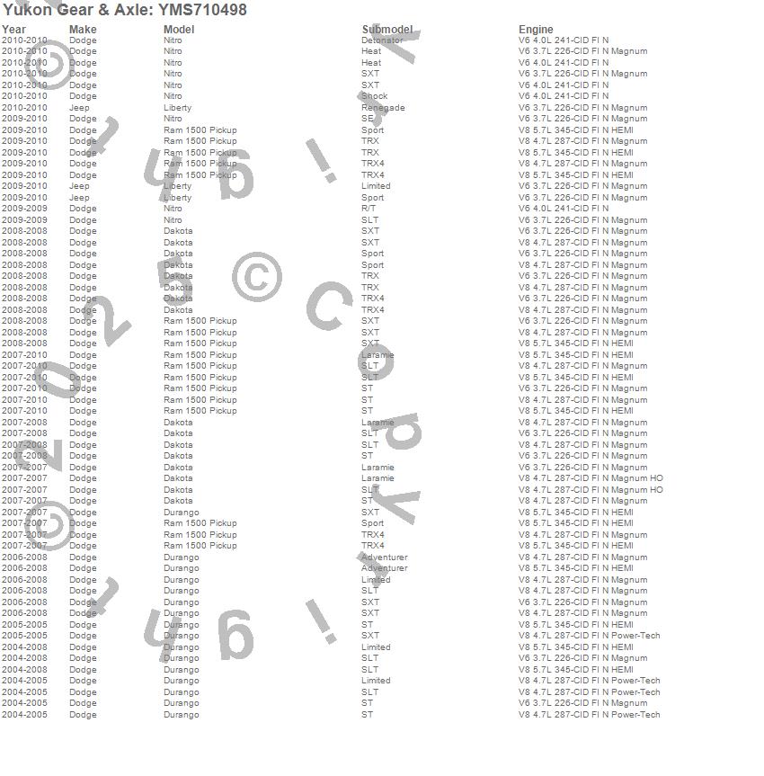 Below is an abreviated list of applications for the Yukon Mighty Axle Seal.