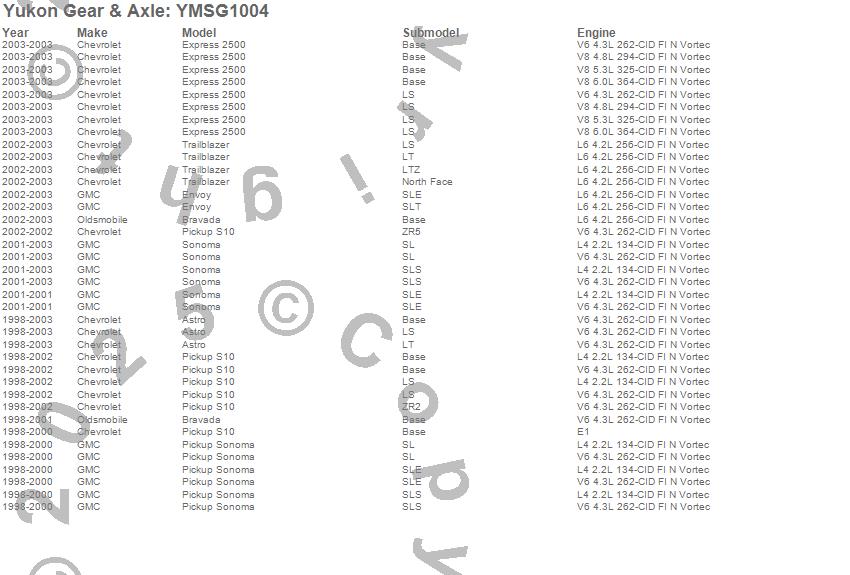 Below is an abreviated list of applications for the Yukon Mighty Axle Seal.
