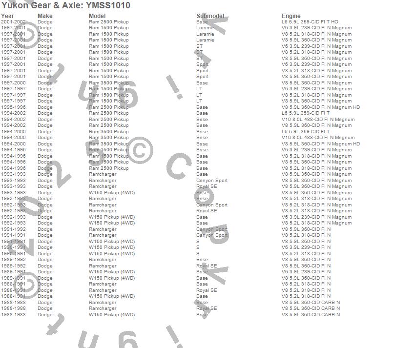Below is an abreviated list of applications for the Yukon Mighty Axle Seal.