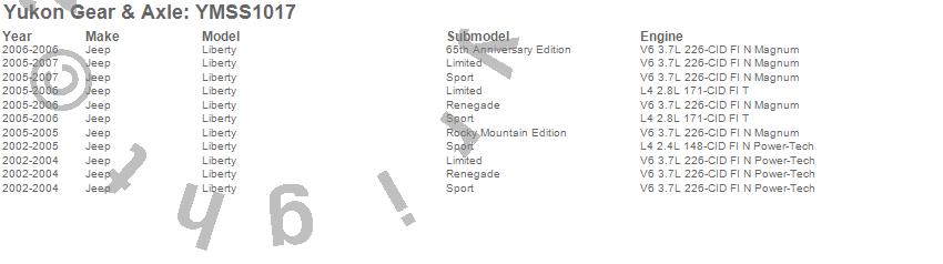 Below is an abreviated list of applications for the Yukon Mighty Axle Seal.