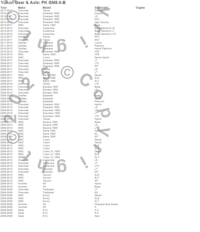 Below is an abreviated list of applications for the Pinion Install Kit.