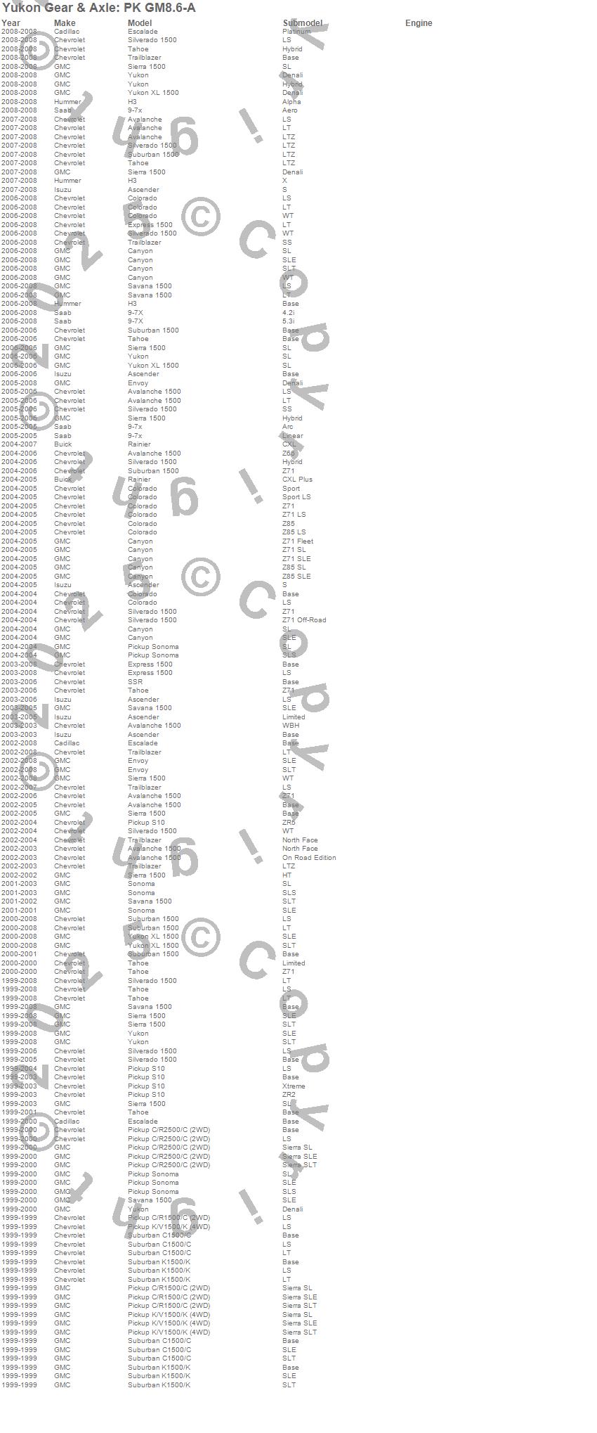 Below is an abreviated list of applications for the Pinion Install Kit.