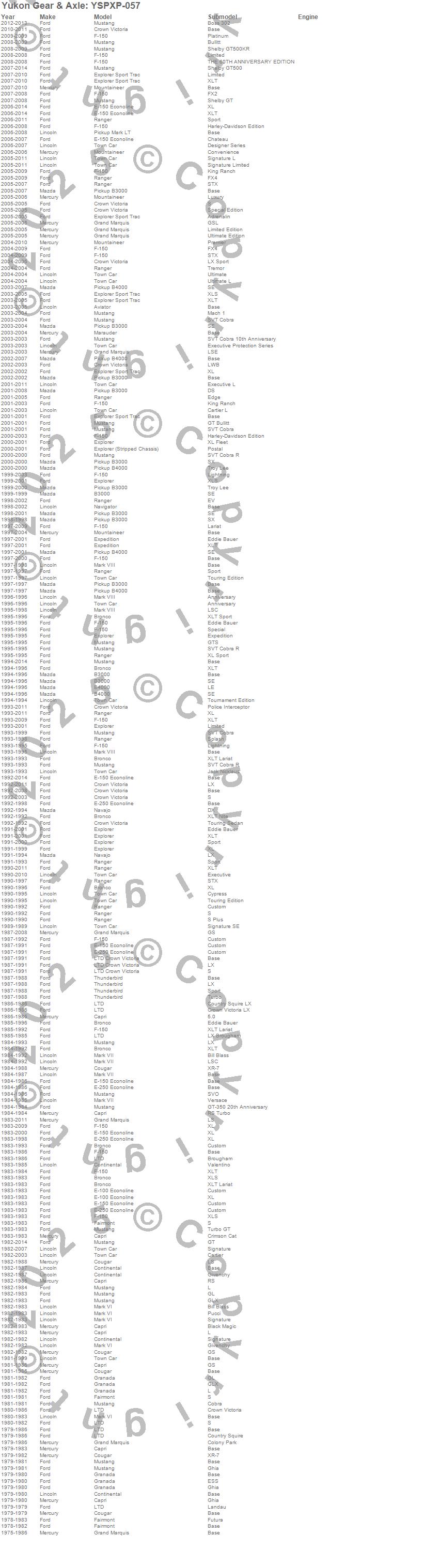 Aviator, B3000, B4000, Bronco, Capri, Continental, Cougar, Crown Victoria, E-100 Econoline, E-100 Econoline Club Wagon, E-150 Econoline, E-150 Econoline Club Wagon, E-250 Econoline, E-250 Econoline Club Wagon, Expedition, Explorer, Explorer Sport Trac, F-150, F-150 Heritage, Fairmont more…
