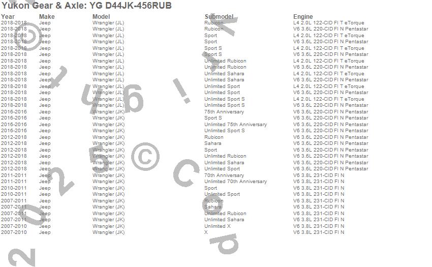 Below is an abreviated list of applications for the Ring And Pinion Gear Set.