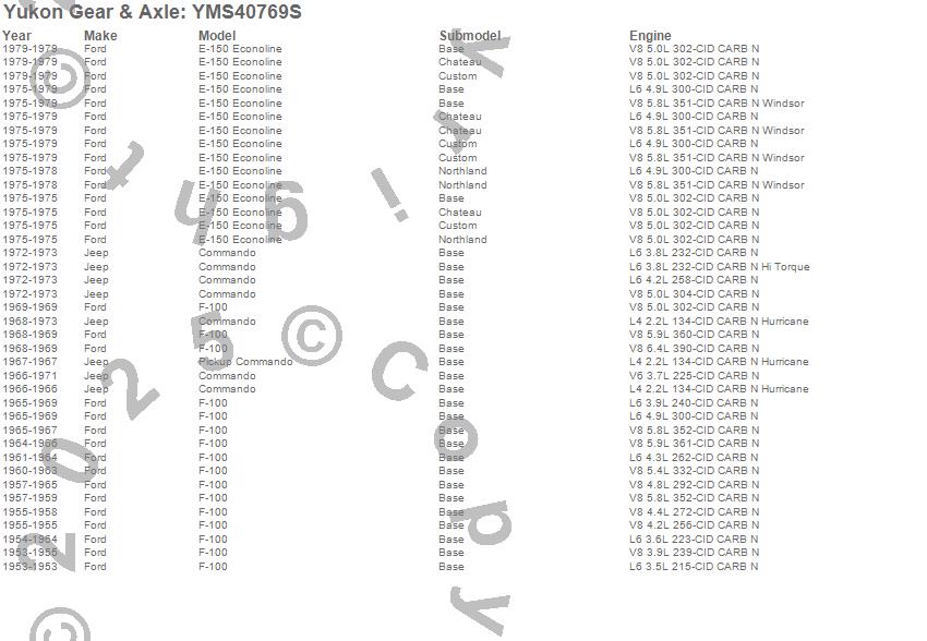 Below is an abreviated list of applications for the Yukon Mighty Axle Seal.