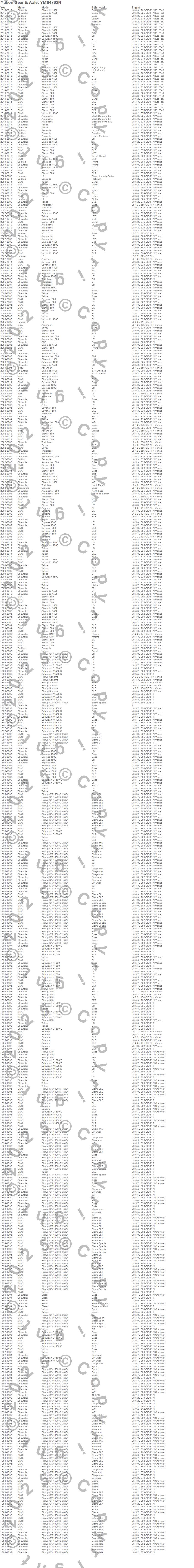 C15/C1500, C1500, C1500 Pickup, C1500 Suburban, Camaro, Caprice, El Camino, Express 1500, Impala, K1500, K1500 Pickup, K1500 Suburban, R1500 Pickup, Savana 1500, Savana 2500, Silverado 1500, Sonoma, Suburban 1500, Tahoe, Typhoon more…