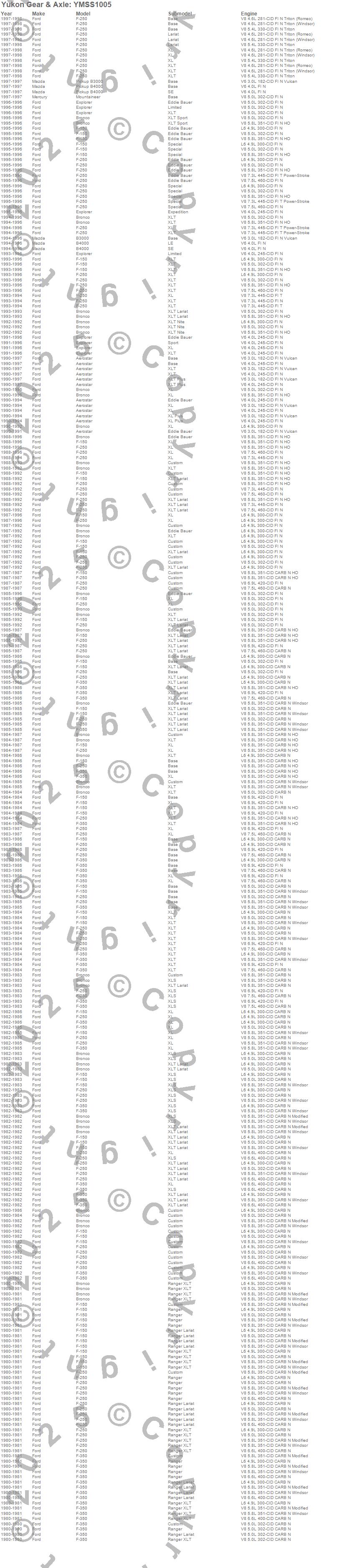 Below is an abreviated list of applications for the Yukon Mighty Axle Seal.