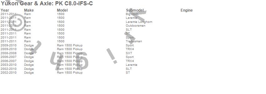 Below is an abreviated list of applications for the Pinion Install Kit.