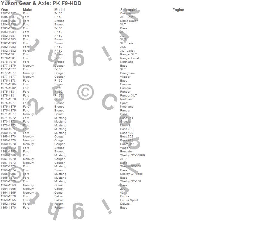 Below is an abreviated list of applications for the Pinion Install Kit.