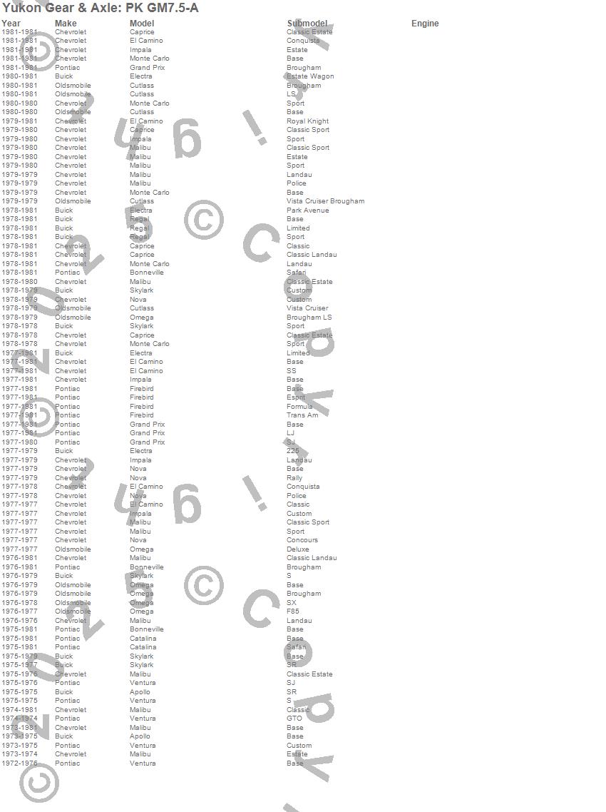 Below is an abreviated list of applications for the Pinion Install Kit.