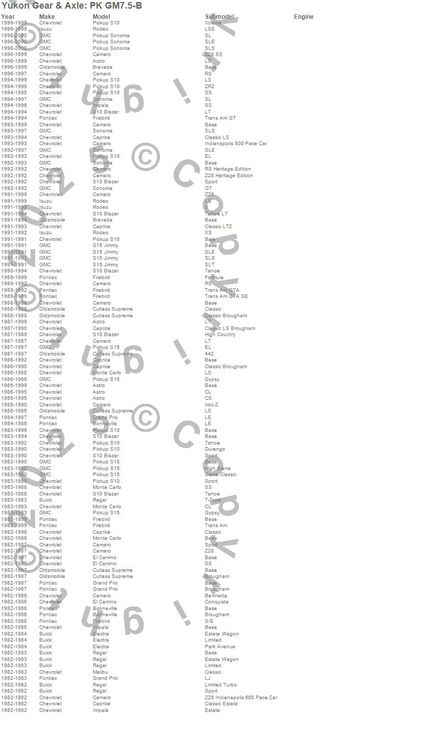 Astro, Camaro, Caprice, El Camino, Firebird, Grand Prix, Impala, Malibu, Monte Carlo, Rodeo, S10 Blazer, S10 Blazer (Canadian), S10 Pickup, S15 Jimmy, S15 Pickup, Sonoma, Syclone, Chevrolet, GMC, Isuzu more…