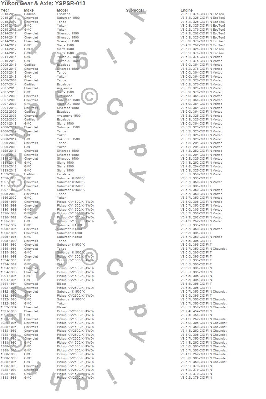 Avalanche, Blazer, Escalade, Escalade ESV, Escalade EXT, K1500 Pickup, K1500 Suburban, Sierra 1500, Silverado 1500, Silverado 1500 HD, Suburban 1500, Tahoe, V1500 Suburban, Yukon, Yukon XL 1500, Cadillac, Chevrolet, GMC, 2013, 2012 more…