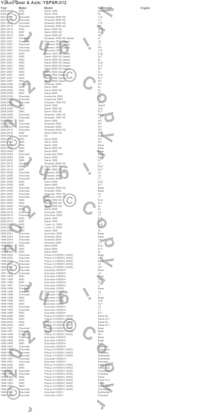 Avalanche 2500, C2500 Suburban, H2, K2500 Pickup, K2500 Suburban, K2500 Suburban (Canadian), K3500 Pickup, R20 Suburban, R2500 Suburban, Sierra 1500 HD, Sierra 1500 HD Classic, Sierra 2500, Sierra 2500 HD, Sierra 2500 HD Classic, Sierra 3500, Sierra 3500 HD, Silverado 1500 HD, Silverado 1500 HD Classic, Silverado 2500, Silverado 2500 HD more…