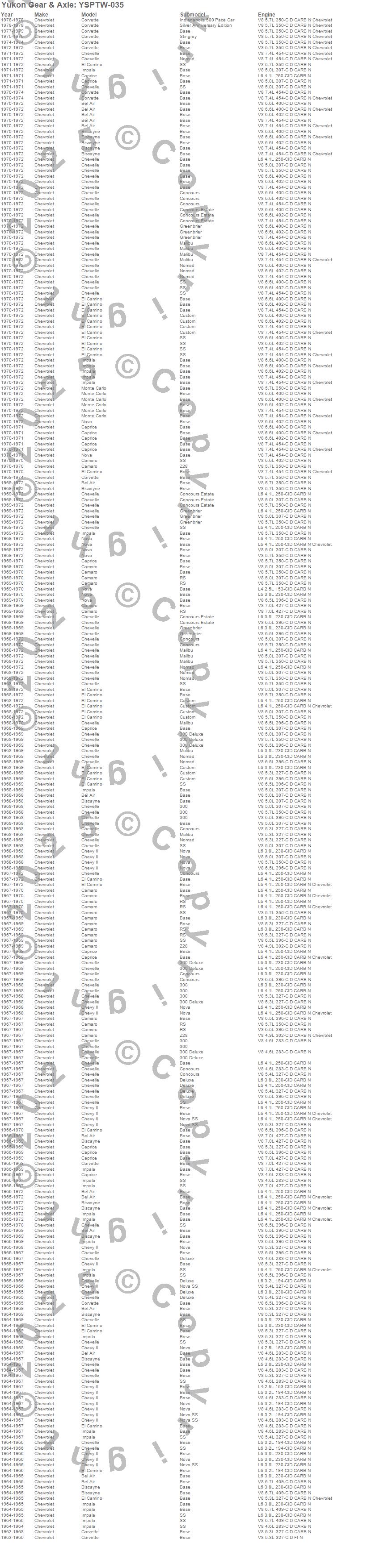 Bel Air, Biscayne, Camaro, Caprice, Chevelle, Chevy II, Corvette, El Camino, Firebird, Impala, Malibu, Monte Carlo, Nova, Skylark, Tempest, Ventura, Wildcat, Buick, Chevrolet, Pontiac more…