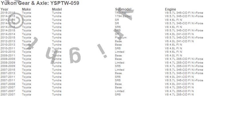 Below is an abreviated list of applications for the Pinion Gear Thrust Washers.