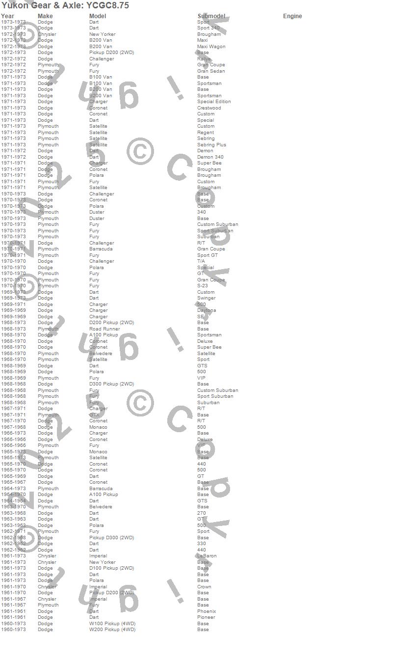 Barracuda, Belvedere, Belvedere II, Challenger, Charger, Coronet, Dart, Duster, Fury, GTX, Imperial, ML350, Monaco, New Yorker, Polara, Road Runner, Satellite, Chrysler, Dodge, Mercedes-Benz more…