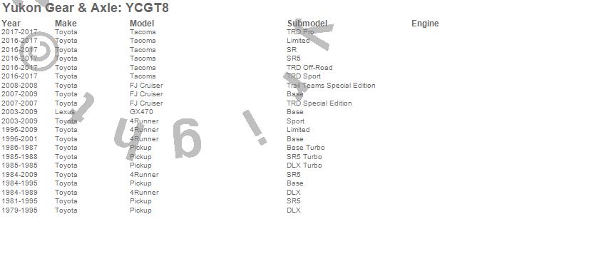 Below is an abreviated list of applications for the Differential Cover Gasket. 4Runner, Toyota, 2011, 2010, 2009, 2008, 2007, 1996, 1995, 1994, 1993, 1992, 1991, 1990, 1989, 1988, 1986 more...
