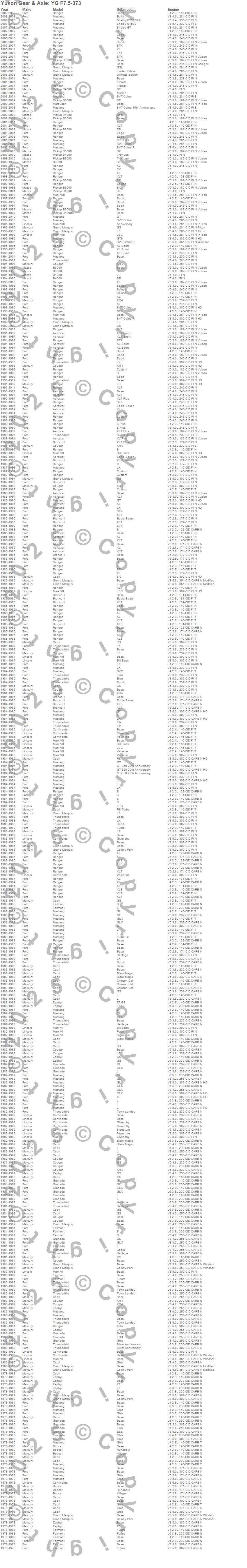 B3000, B4000, Bobcat, Bronco II, Capri, Continental, Cougar, Fairmont, Granada, Mark VI, Mustang, Ranger, Thunderbird, Ford, Lincoln, Mazda, Mercury, 2011, 2010, 2009 more…