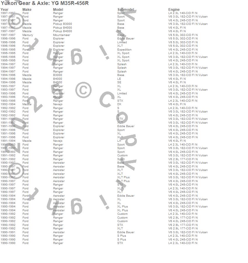 Below is an abreviated list of applications for the Ring And Pinion Gear Set.