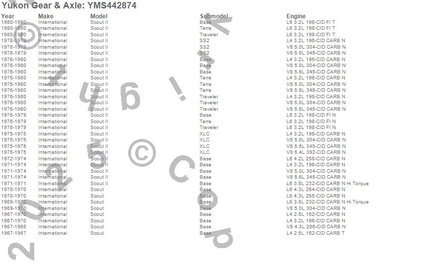 Below is an abreviated list of applications for the Yukon Mighty Axle Seal.