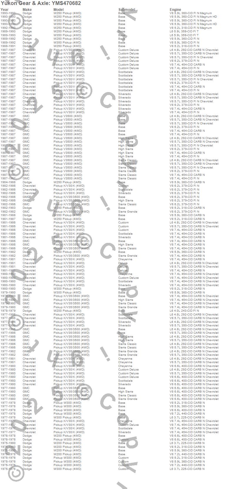 Below is an abreviated list of applications for the Yukon Mighty Axle Seal.