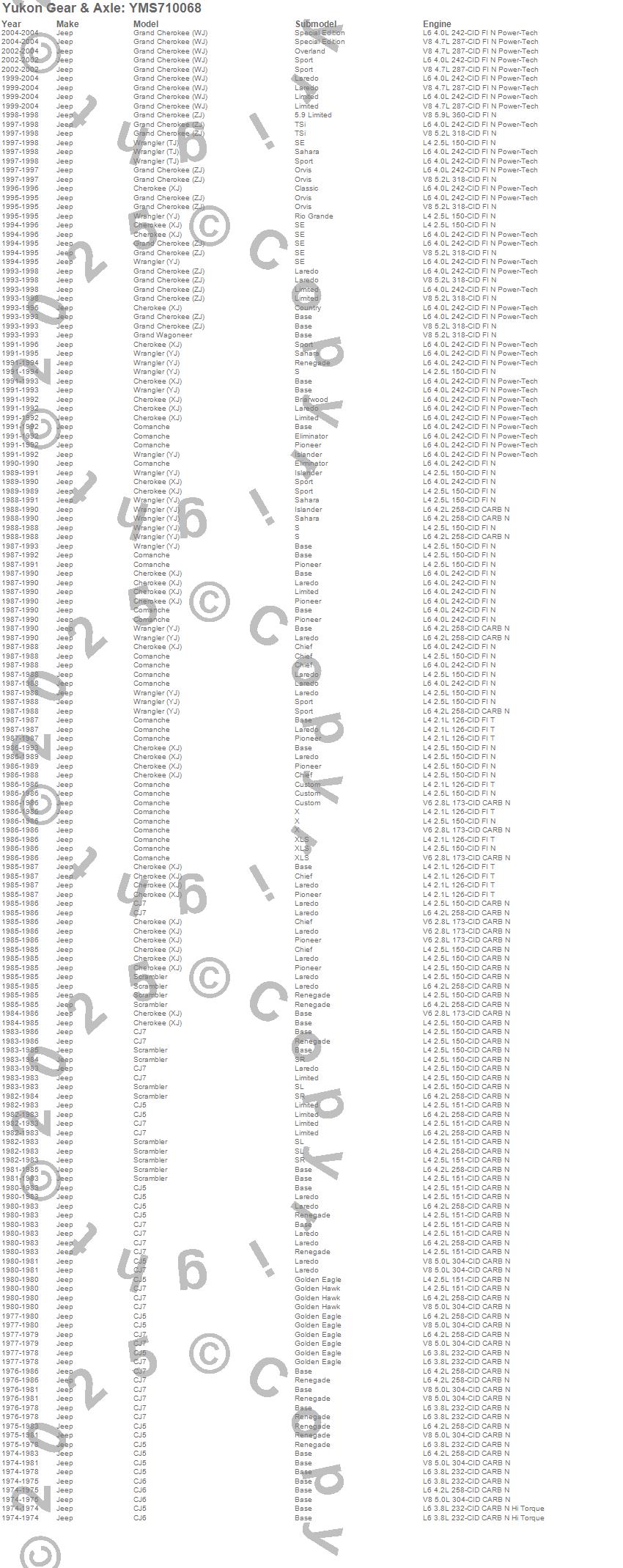 Cherokee (XJ), CJ5, CJ7, Comanche, Grand Cherokee (WJ), Grand Cherokee (ZJ), Grand Wagoneer, Scrambler, Wagoneer, Wrangler (TJ), Wrangler (YJ), Jeep, 2006, 2005, 2004, 2003, 2002, 2001, 2000, 1999 more...