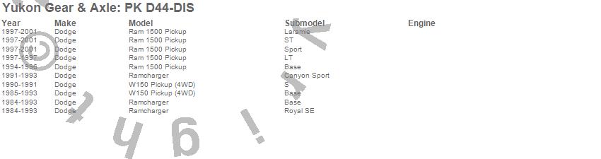 Below is an abreviated list of applications for the Pinion Install Kit.